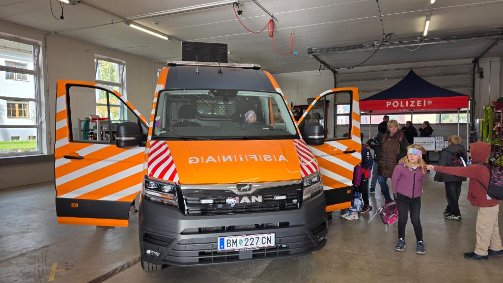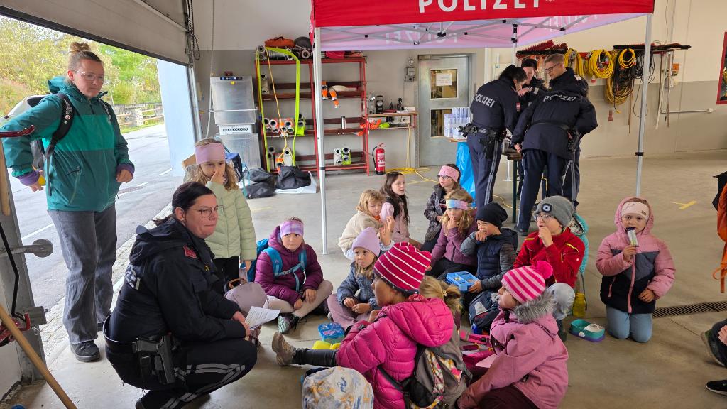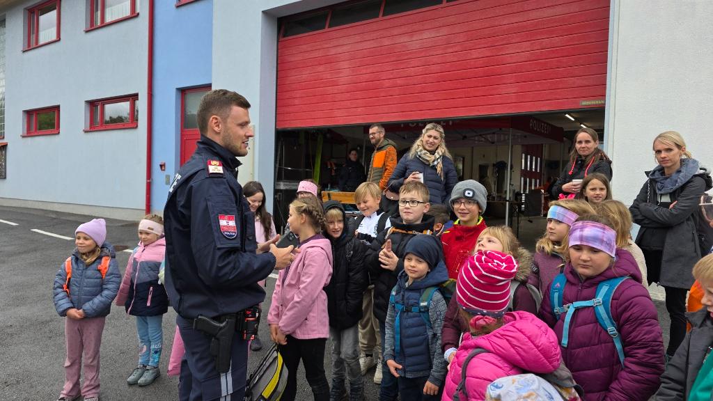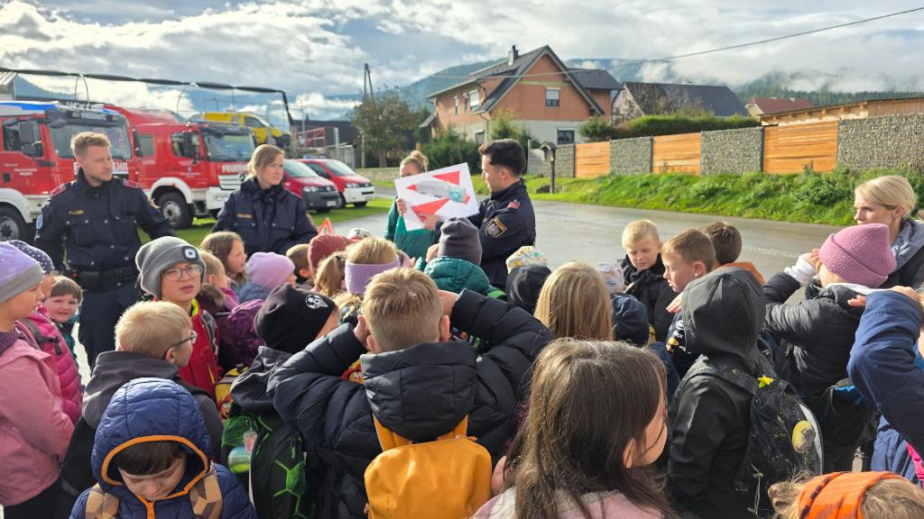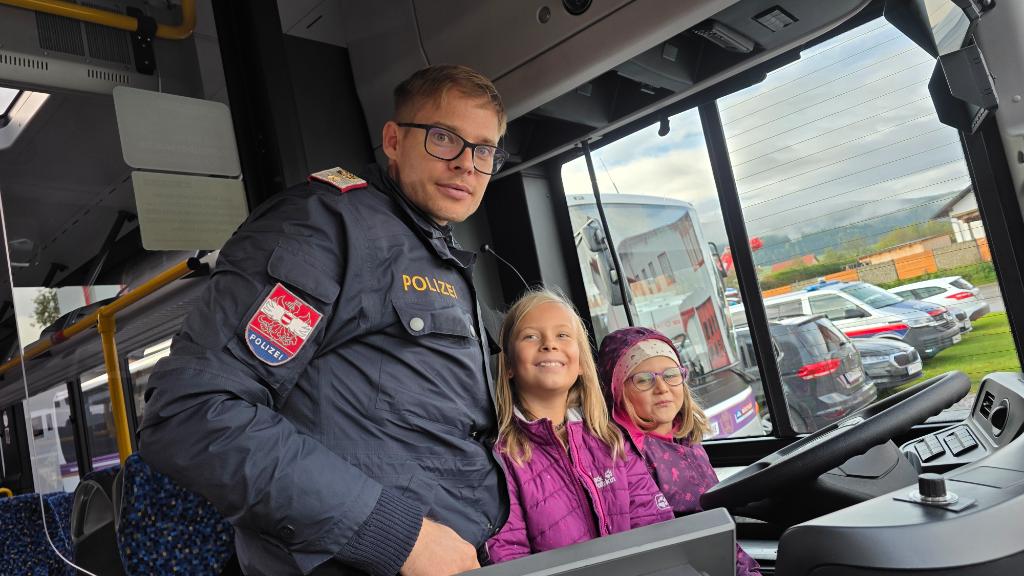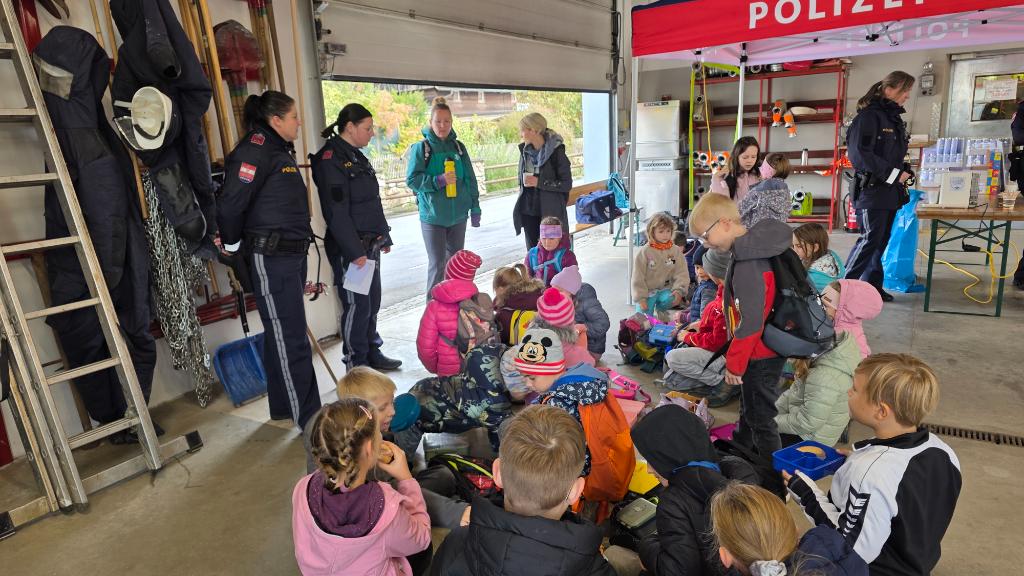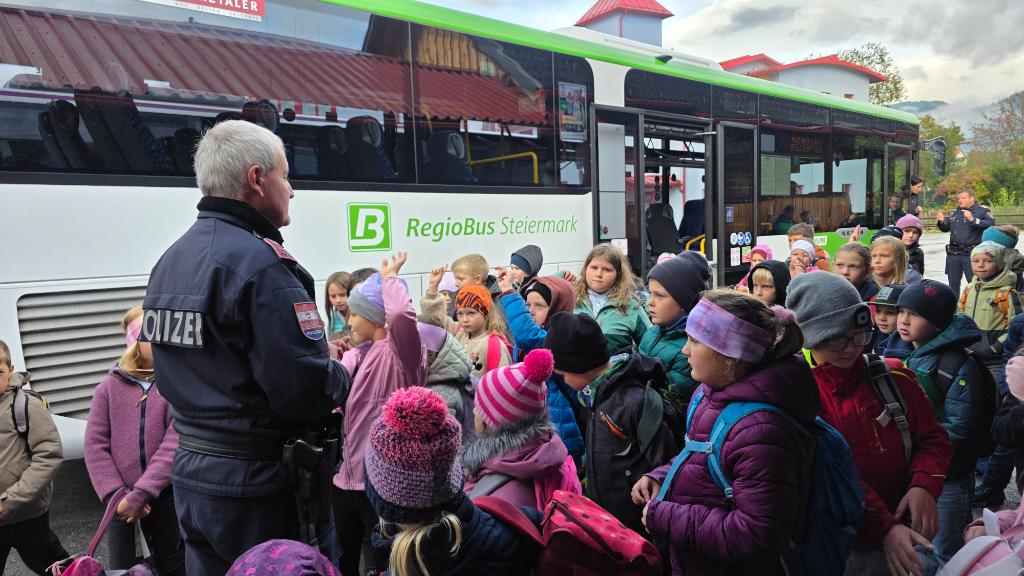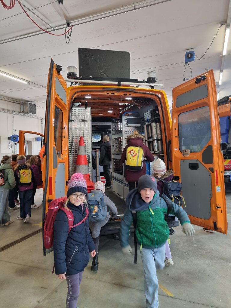Mit dem öffentlichen Bus fuhren die Kinder der 2. Klassen nach Freßnitz, um dort an der Aktion „Gemeinsam sicher!“ von der Polizei teilzunehmen. Ein Fahrzeug der Straßenmeisterei stand bereit, um den Kindern einen Eindruck zu vermitteln, welchen Bereich man aus der Fahrerkabine überblicken kann und wo die gefährlichen toten Winkel sind. Außerdem wurde den Kindern die Ausrüstung der Fahrzeuge gezeigt. Anschließend ging es zu Fuß zurück zur Schule.