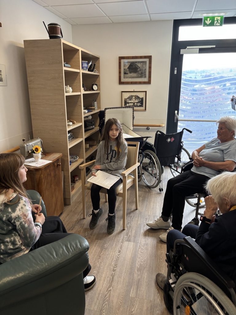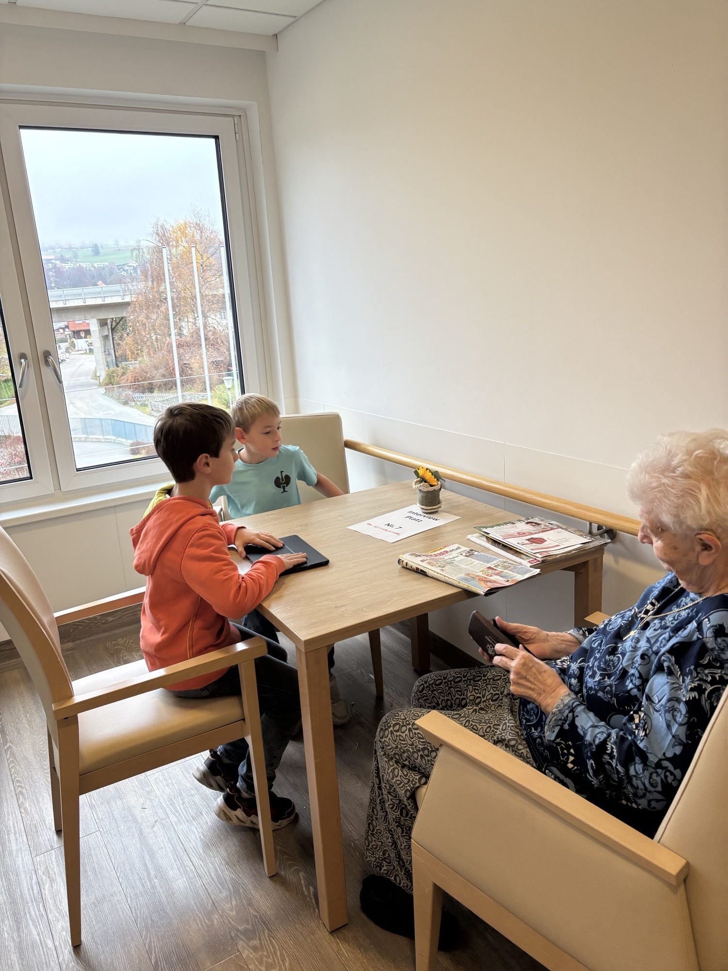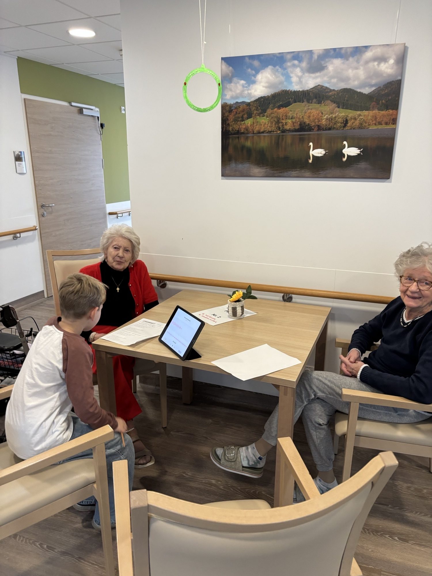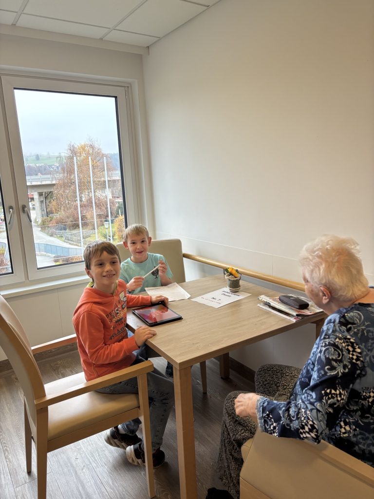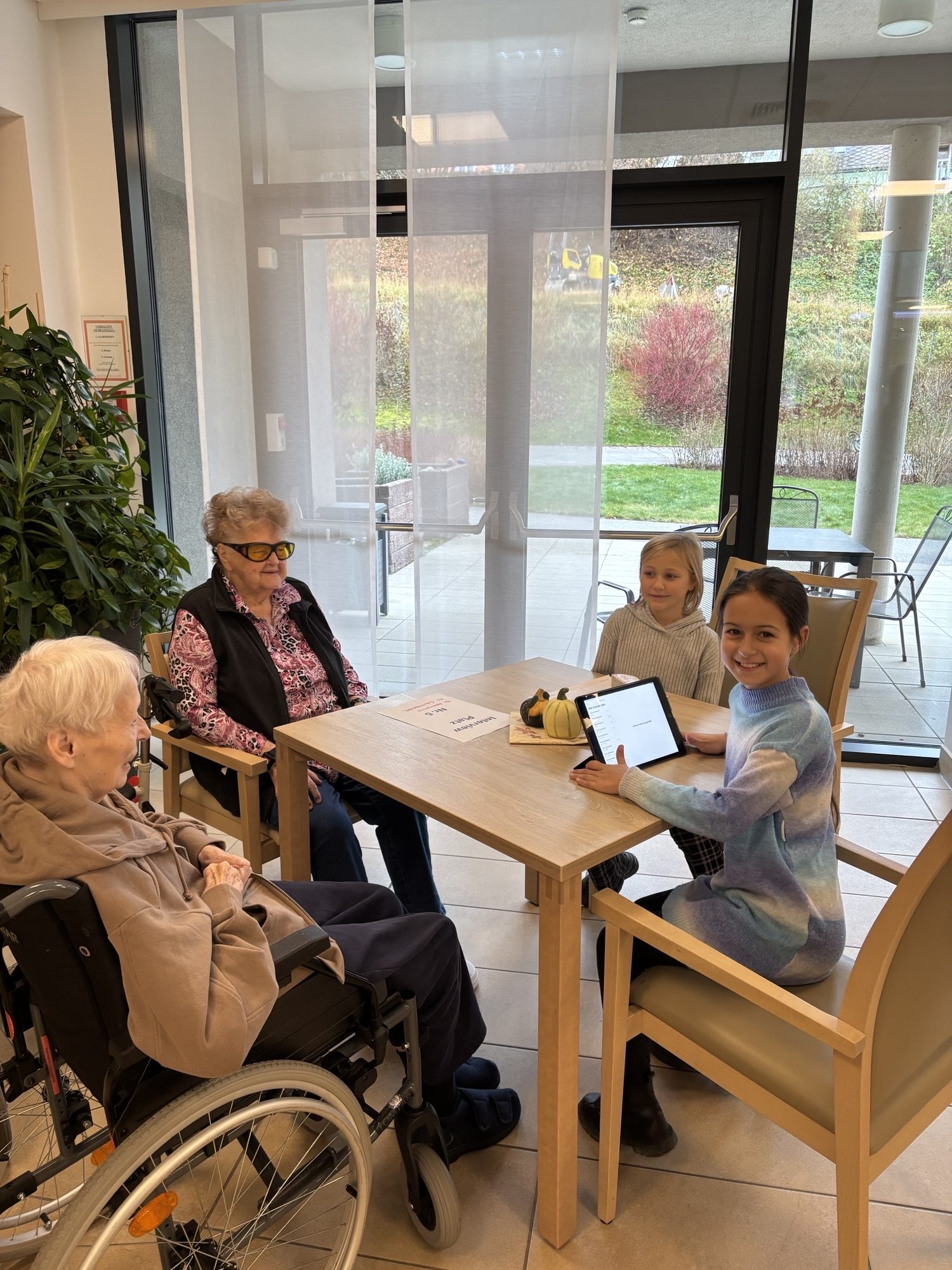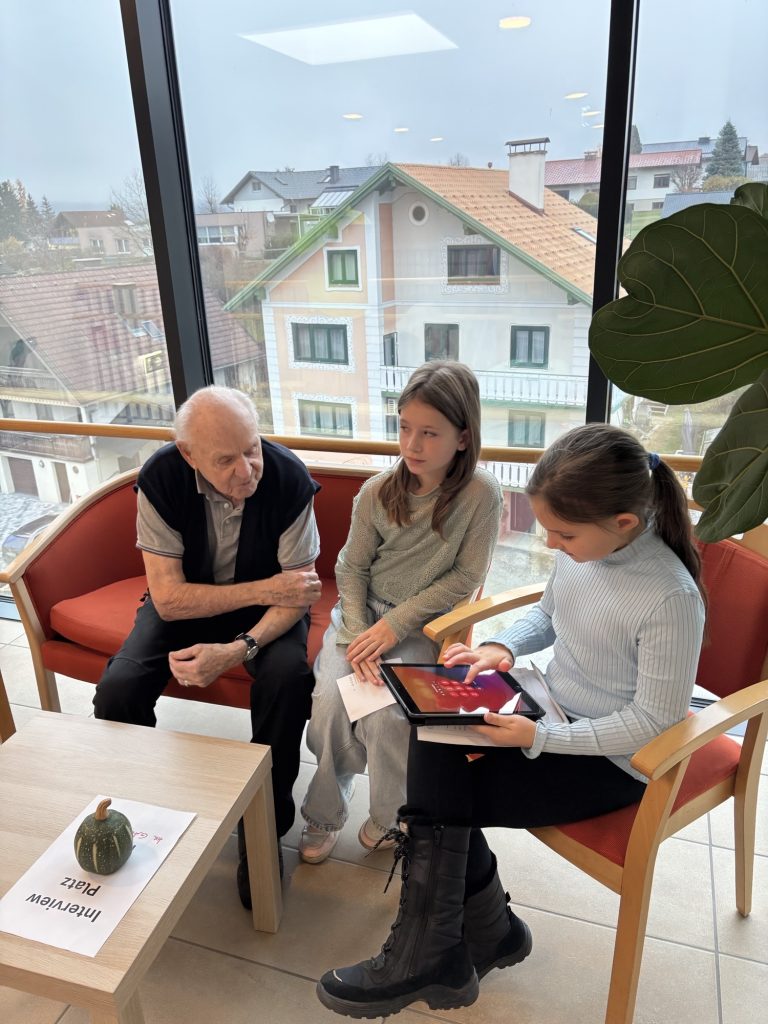 13.11. F3 Pflegeheim / Berichte/Aktuelles / Von vskrieglach Beim monatlichen Besuch im Pflegeheim führten die Kinder der F3 Klasse diesmal Interviews mit einem Fragebogen durch. Die Antworten wurden mit iPads aufgenommen und in der Schule verschriftlicht.