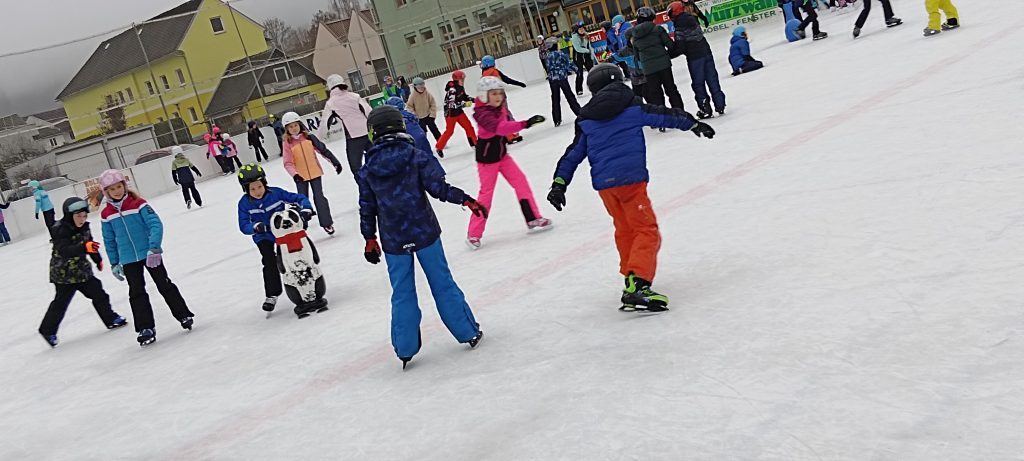 Saisonstart für das Eislaufen war für die Kinder der 4. Klassen vergangenen Freitag. Mit dem Zug fuhren die Kinder nach Langenwang, wo sie das erste Mal in diesem Winter die Kunsteislaufanlage benutzen konnten. Leider gab es auch einen Sturz, der mit einer Verletzung der rechten Hand mit Arzt- und Krankenhausbesuch im Anschluss mit Gips endete. Alles Gute Florian!