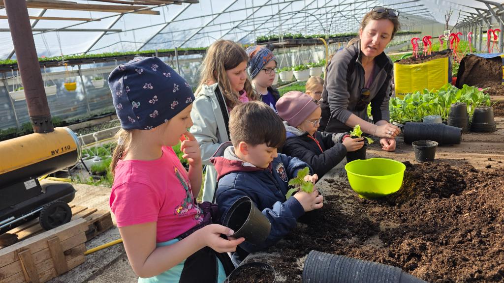 15.4. Schule in der Gärtnerei / Berichte/Aktuelles / Von vskrieglach In den letzten beiden Wochen nahmen wir bei der Aktion „Schule in der Gärtnerei“ teil. Die Kinder erfuhren bei der Gärtnerei Masutti alles Wichtige zum Anpflanzen, lernten über die Erdbeschaffenheit und bekamen eine Pflanze für daheim mit.