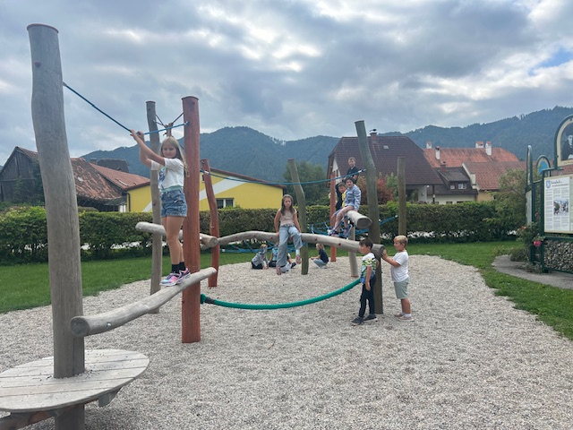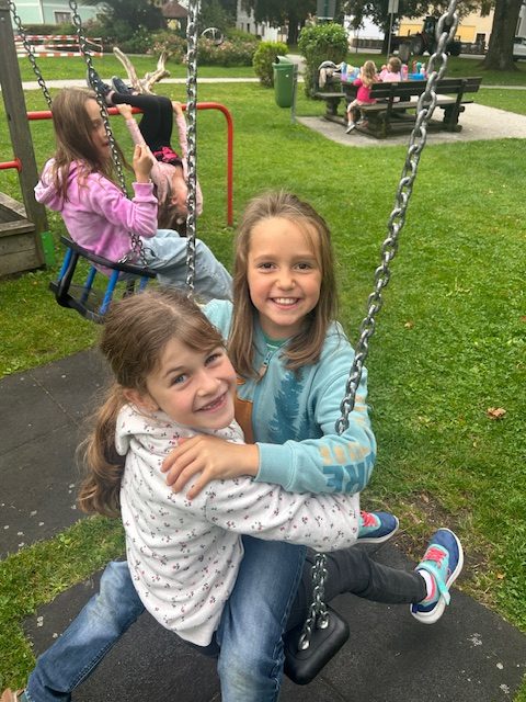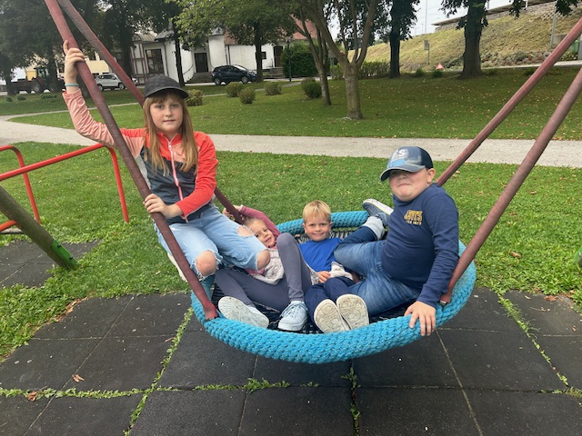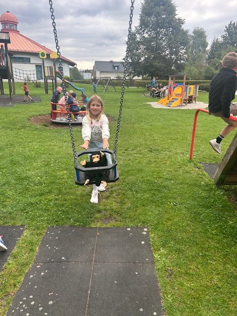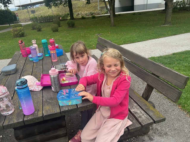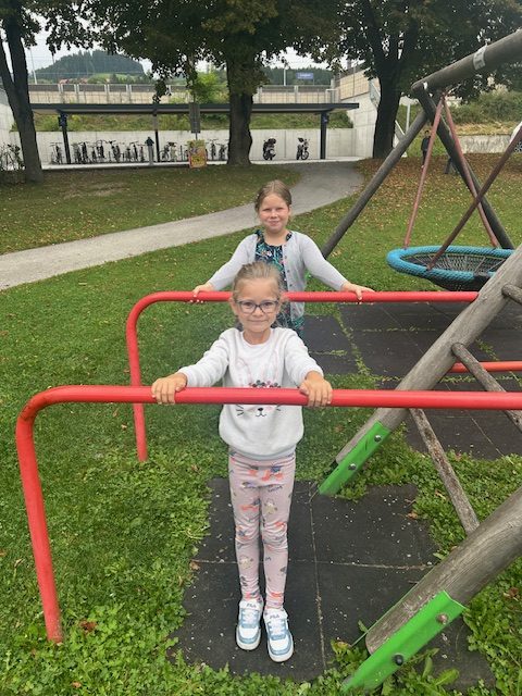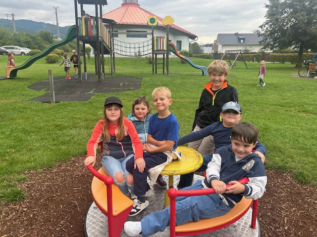 Da die Anzahl der Schüler:innen noch immer steigt und wir schon 225 Kinder an unserer Schule haben, verbringen einige Klassen die Hofpause abwechselnd im Schulhof und im Roseggerpark. Die Kinder der Familienklassen haben diese Erholung schon genossen.