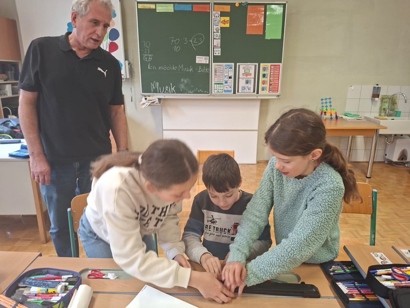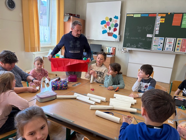 27.3. 3ab +ASO / Berichte/Aktuelles / Von vskrieglach Die nächste Kooperation zwischen der ASO und der Volksschule fand mit dem gemeinsamen Basteln der Kinder der 3a ,3b Klasse in der Sonderschule statt.