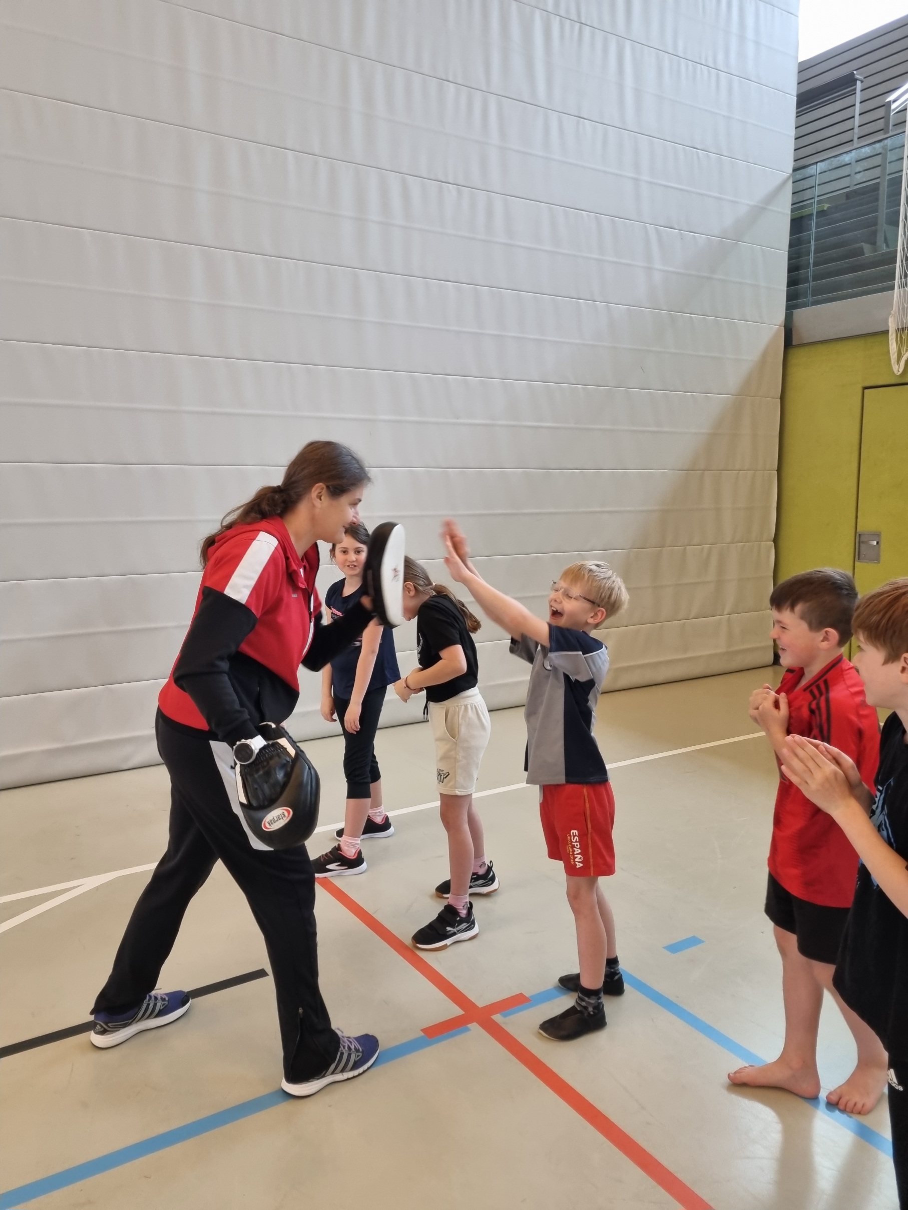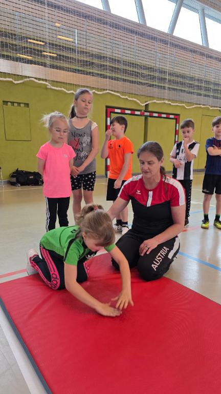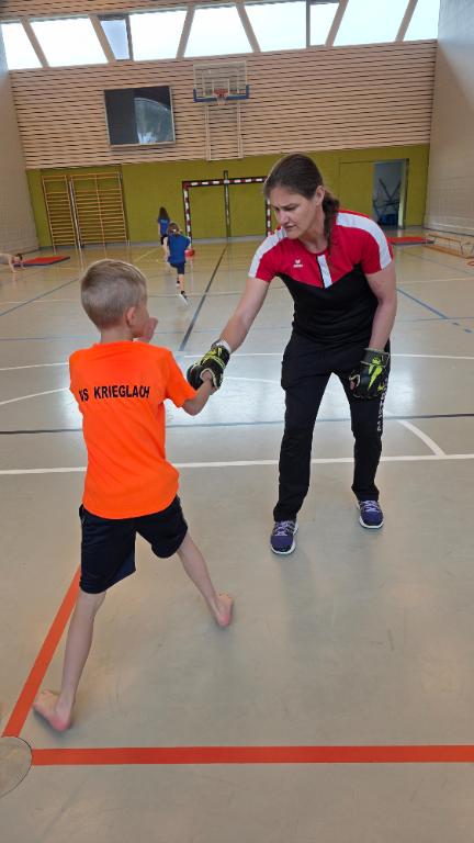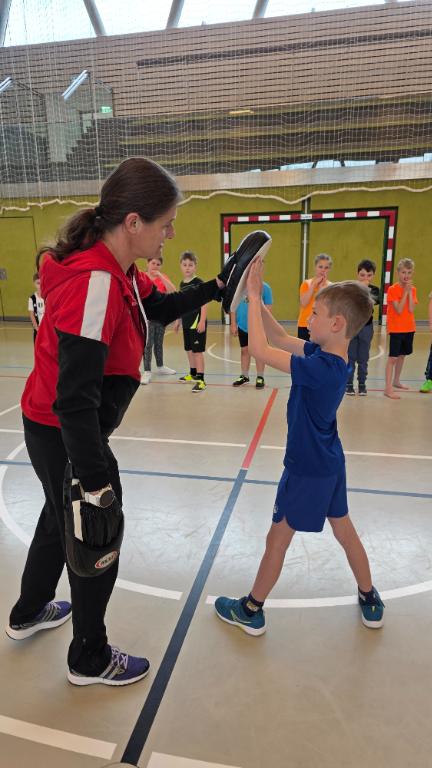 Heiß her ging es teilweise beim Selbstverteidigungskurs, den die Kinder in der Sporthalle absolvierten. Unter professioneller Anleitung der Polizistin und Jiu-Jitsu Trainerin Nicole Urschinger erlernten Kinder das richtige Verhalten in kritischen Momenten, wenn man bedroht wird.
