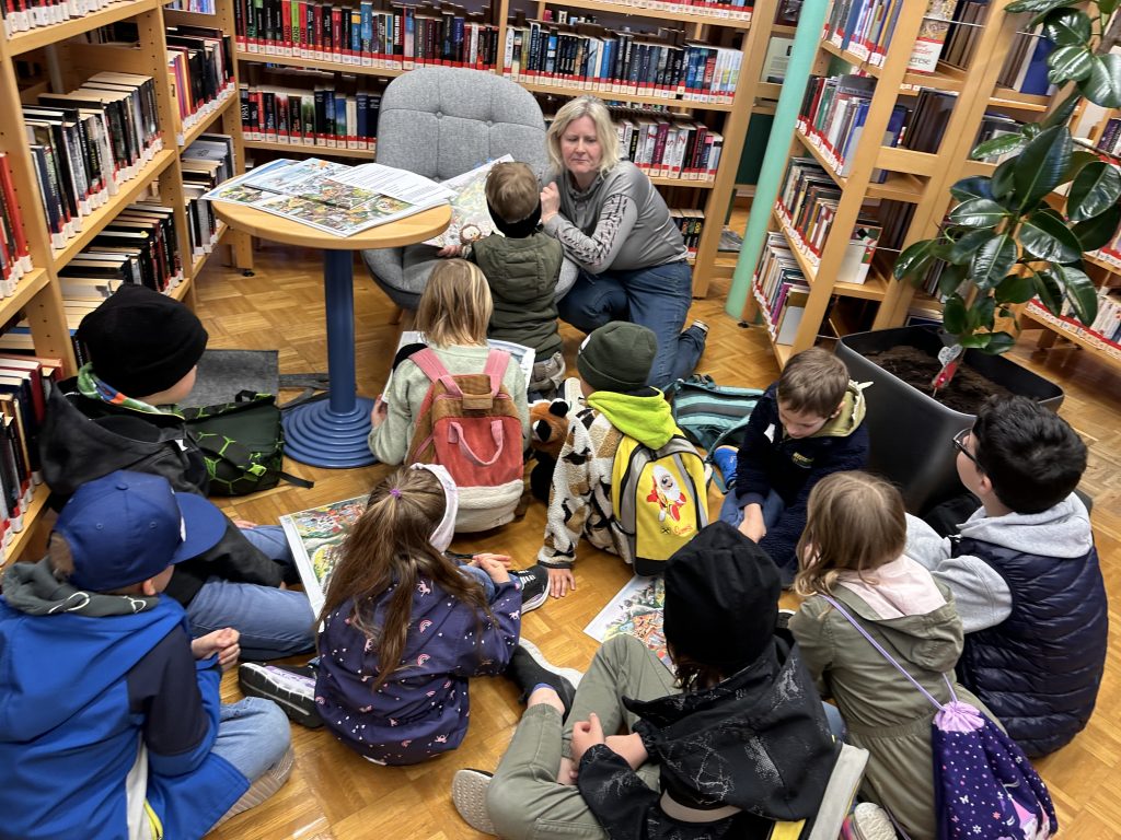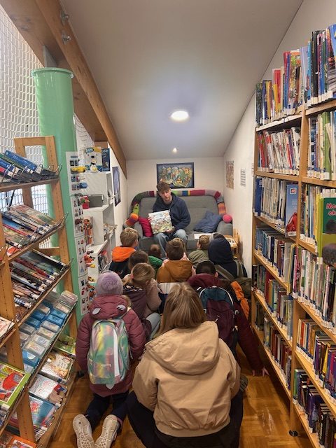 Zum Welttag des Buches gab es eine interessante Vorlesereise für Kinder der Volksschule und der Sonderschule. In der HLW, im Gemeindeamt, in der Bücherei und in der Schule wurde den Kleingruppen aus dem neuen Wimmelbuch über die Obersteiermark Ost vorgelesen und Suchaufgaben gelöst. Nach Absolvierung aller Stationen wussten die Kinder gut Bescheid über unsere Region und welche Schätze sich hier verbergen. Danke an ALLEe, die zum Gelingen dieses Vormittags beigetragen haben!