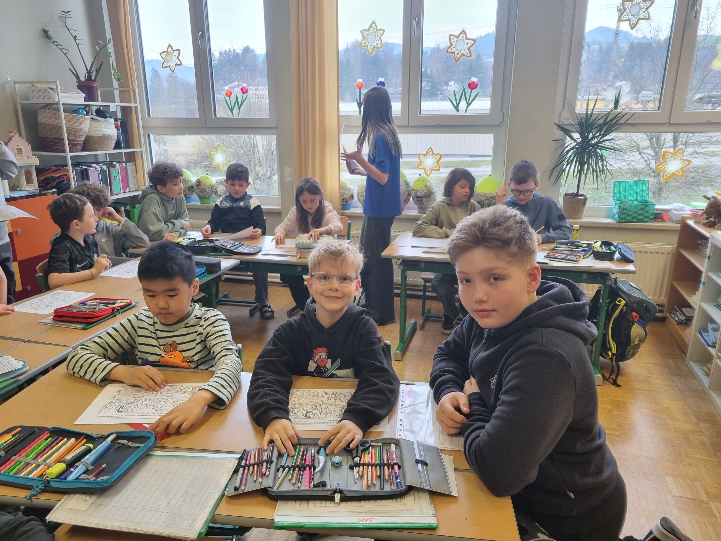 Im Umfeld des österreichischen Vorlesetags besuchten uns Kinder der Mittelschule und lasen in einigen Klassen vor. Das Märchen vom Froschkönig wurde aufgeteilt vorgelesen und am Ende bekamen die Kinder ein Blatt zum Ausmalen und zum Sortieren des Märchens.