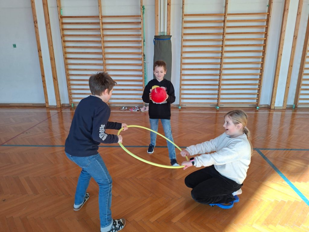 26.1. 3a+ASO bewegte Pause / Berichte/Aktuelles / Von vskrieglach Unser Inklusionsprojekt mit der ASO wurde durch eine gemeinsame bewegte Pause der Kinder von der 3a der Volksschule mit Kindern der Sonderschule im Turnsaal fortgesetzt.