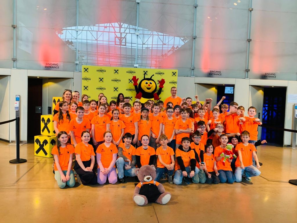 Auf Einladung der Raiffeisenbank fuhren die Kinder der 4. Klassen heute nach Graz in die Helmut List Halle. Die von der Styriarte gebotene Live Musikshow Soundflix#5 brachte Soundtracks von Harry Potter, Herr der Ringe und weitere bekannte Klänge.