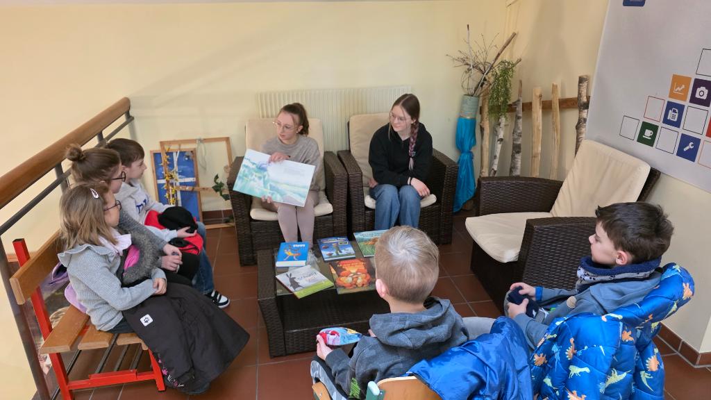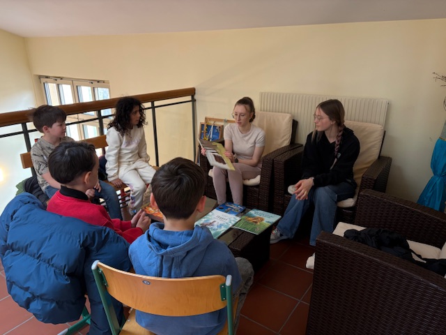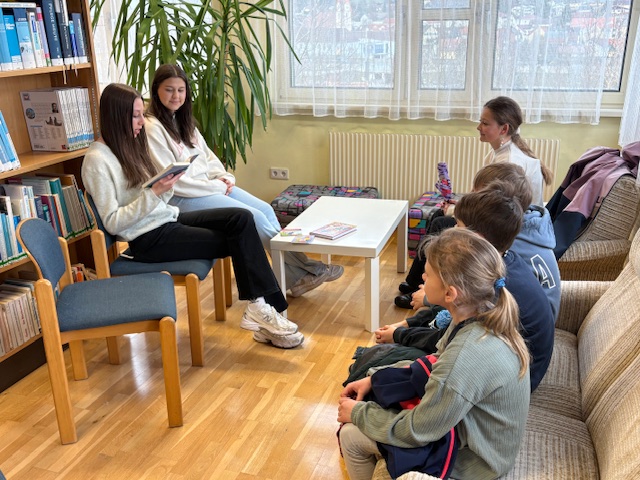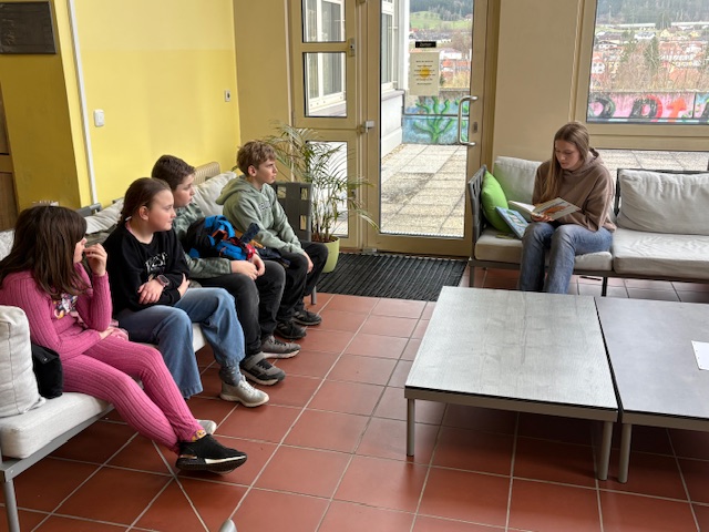 Die Kinder von drei Klassen unserer Schule wurden vom Direktor Jochen Täubl in die HLW eingeladen. Der österreichische Vorlesetag wurde genutzt, um unseren Kindern etwas vorzulesen. Einige Schüler:innen der HLW und der Direktor selbst lasen den Kindern aus verschiedenen Büchern vor. Im Anschluss gab es noch ein Getränk und eine große Zimtschnecke.