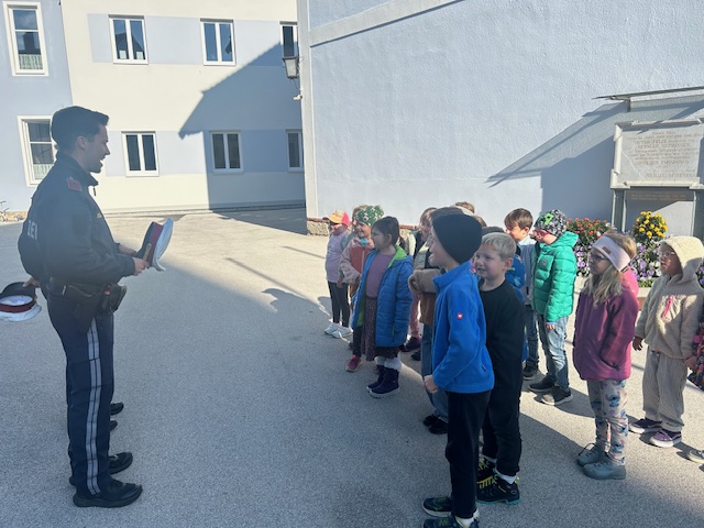 Mit Unterstützung der Polizei lernten die Kinder der ersten Schulstufe der Familienklassen das sichere Überqueren des Zebrastreifens an der Roseggerkreuzung. Zuerst wurde besprochen, wie man sich richtig verhält und worauf man beim Überqueren der Straße achten muss. Im Anschluss ging es zum Zebrastreifen, wo die Kinder bewiesen, dass sie das Erlernte umsetzen konnten.