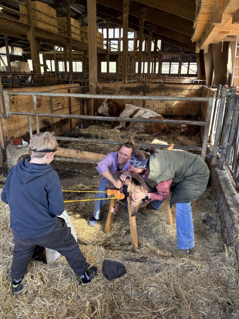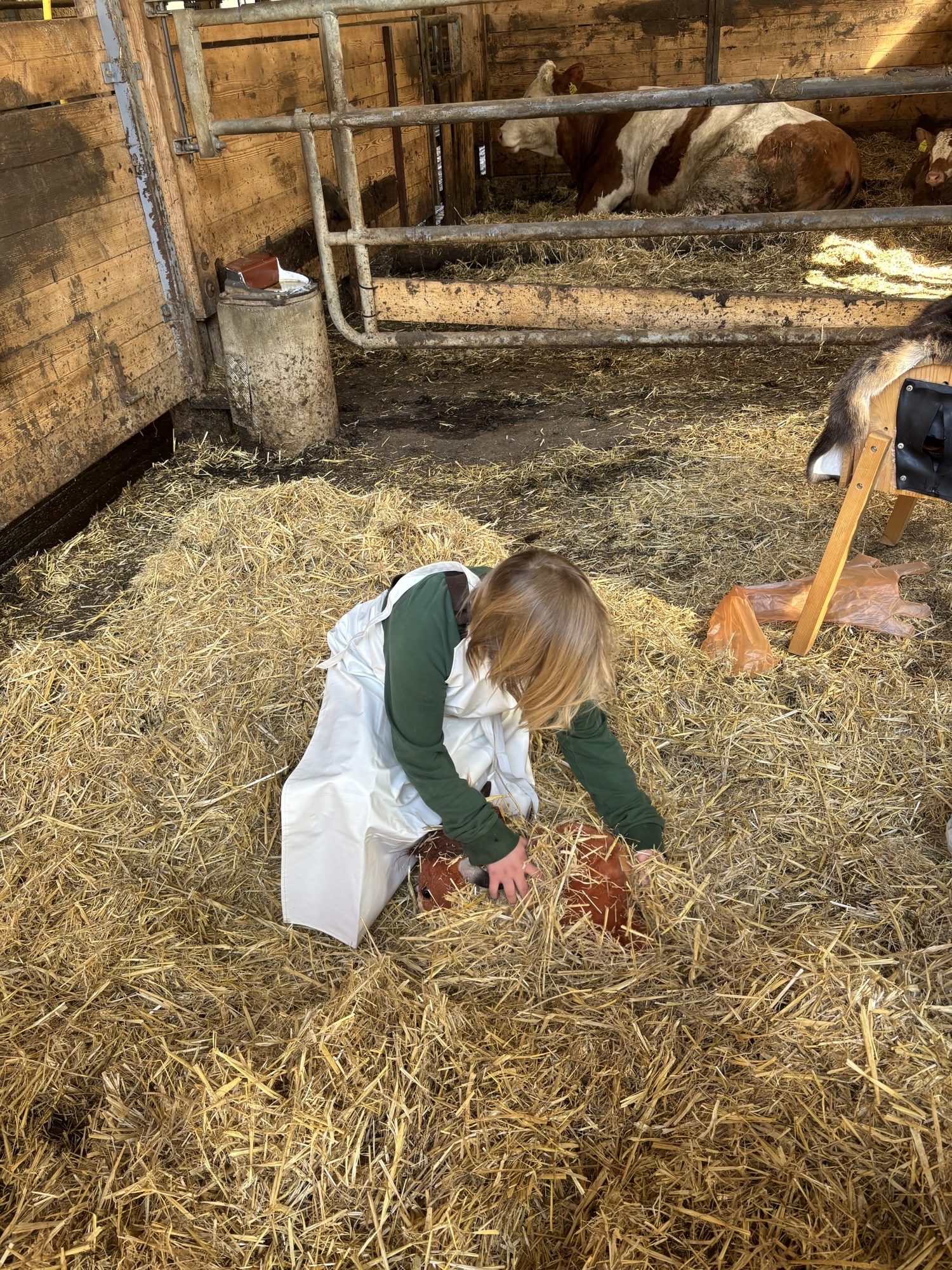 Am Bauernhof der Familie Rossegger erfuhren die Kinder im Rahmen eines Familienworkshops alles Wichtige zum Thema Geburt eines Kalbes. Anhand eines Modells erlebten die Kinder, wie schwer es ist, dass ein Kalb zur Welt gebracht werden kann. Antonia konnte dann auch ihr Kalb den Kindern vorführen.