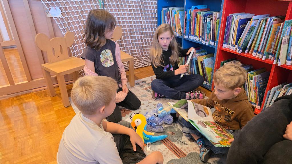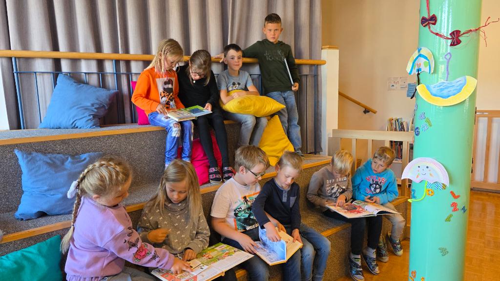 9.10. 1b2a Bücherei / Archiv2025/26 / Von vskrieglach Zum ersten Mal in diesem Schuljahr ging es für die Kinder der beiden Partnerklassen 1b und 2a in die Bücherei. Dort konnten schon Lesekompetenzen bewiesen werden und aus dem großen Angebot an Büchern geschnuppert werden.