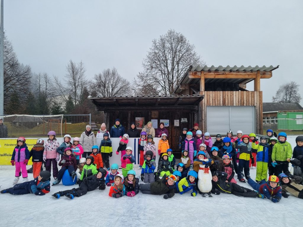 Dank der eisigen Temperaturen ist es nun auch in Krieglach wieder möglich, dass das Eislaufen geübt werden kann. Dank der Gemeinde darf der Platz gratis benützt werden und so waren schon die Kinder der 3. Klassen, 1.Klassen, 2b Klasse und der Familienklassen fleißig am Eislaufplatz unterwegs.