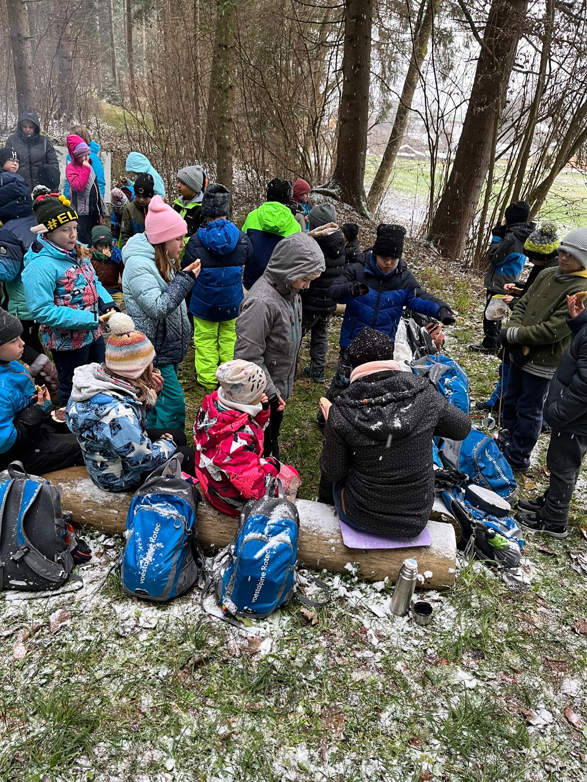 Bei Schnee ging es ins Outdoorklassenzimer im Wald, wo wir mit einem heißen Tee am Lagerfeuer begrüßt wurden. Spielerisch lernten die Kinder viel über die Bäume des Waldes am Beispiel von Fichte und Eiche. Während eine Gruppe eine Wald Schatzsuche machte, stellte das andere Team ein Inhalationssalz aus Fichtenadeln her. Für die gemeinsame Jause bereiteten … 24.11. 4b Draußenschule –…