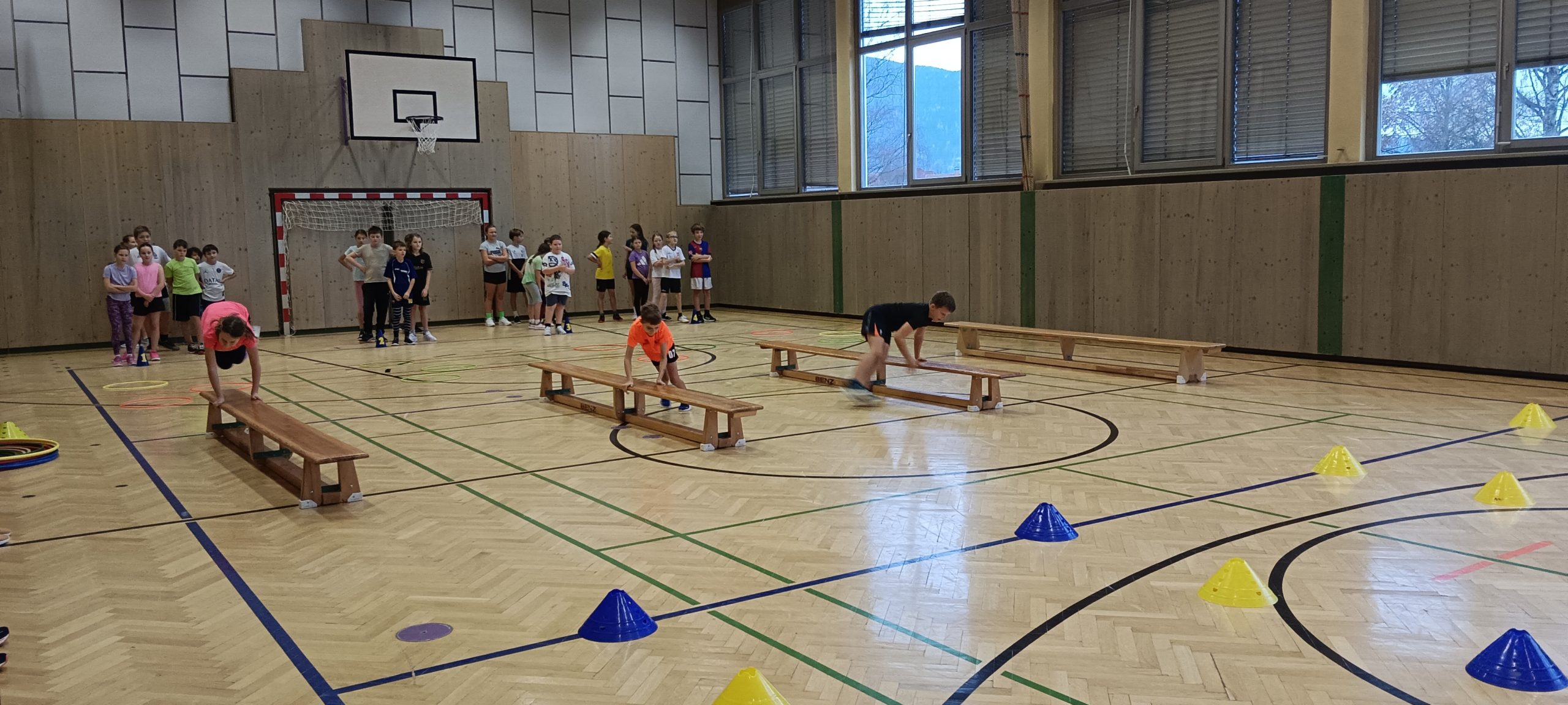 Jedes Jahr um diese Zeit werden die Kinder der 4. Klassen vom Direktor der Mittelschule Krieglach, Herrn Knöbelreiter, zu einem ersten Kennenlernen in den Turnsaal geladen. Gestern  war die 4b Klasse an der Reihe. Während die Kinder im Turnsaal Bewegungsunterricht erhielten, wurden die Eltern über die Schule informiert.