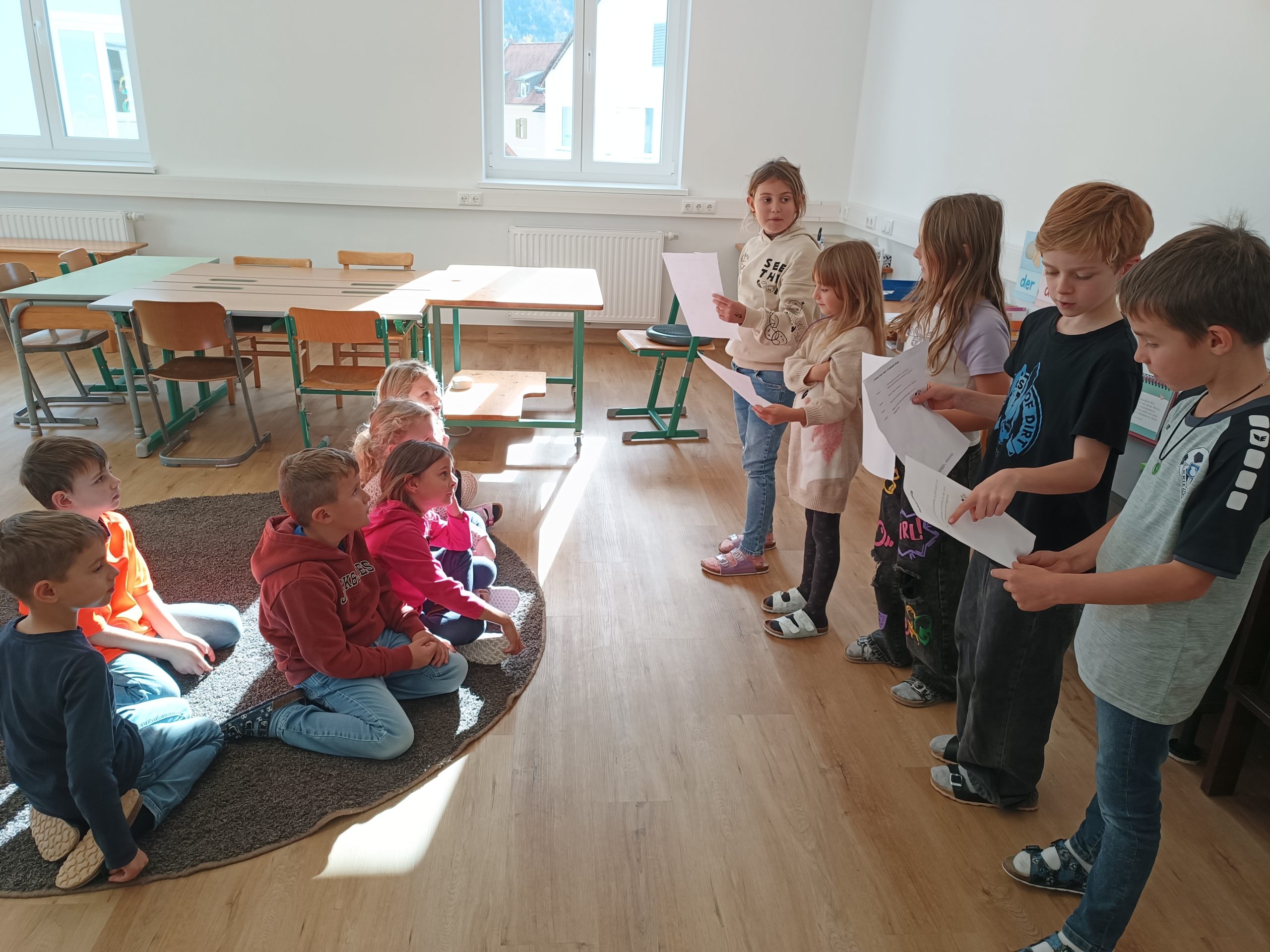 Die Kinder der 1a Klasse wurden von ihrer Partnerklasse, der 2b zu einem Lesetheater eingeladen. Dabei konnten die Kinder ihre Lesekompetenz beweisen und das Lautlesen vor Publikum üben.
