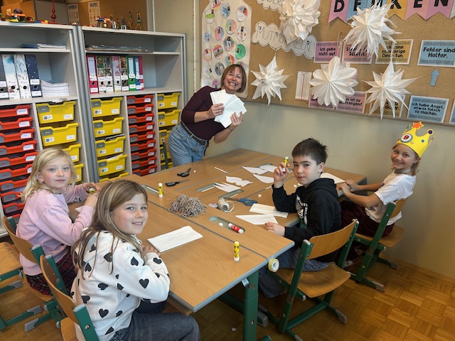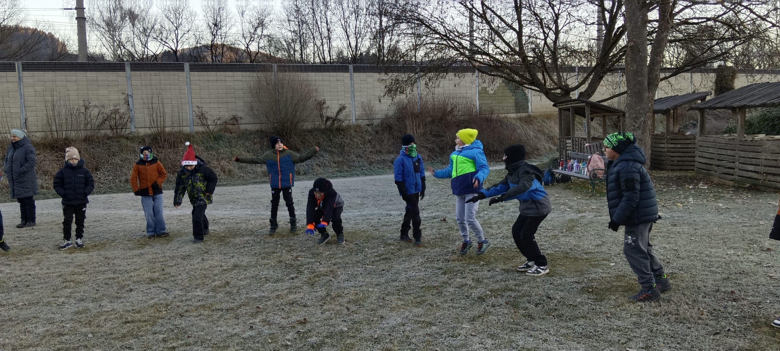 Mit Judith Doppelreiter und Hopsi Hopper begaben sich die Kinder der 4b und 4c Klassen im Rahmen der Draußenschule zum Ententeich, wo bei eisigen Temperaturen abwechslungsreiche Bewegungs- und Koordinationsspiele stattfanden. Anschließend gab es in der Schule noch einen Stationsbetrieb zum Thema „Der Wald und seine Bäume“.